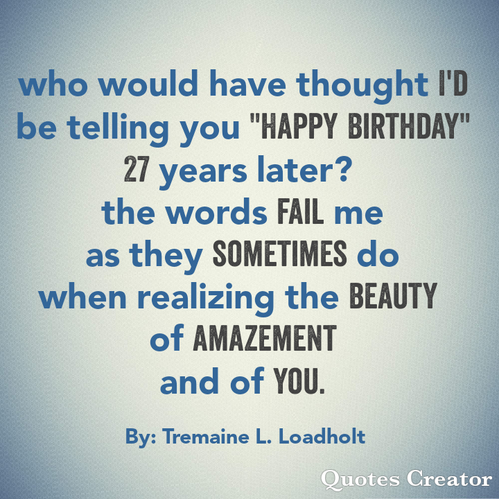 27 Years 04/28/201804/28/2018trE Today is my beautiful friend Theresa’s birthday. She’s an outstandingly amazing human being and I am beyond thankful for her presence. 27 years later, my heart still knows her smile.