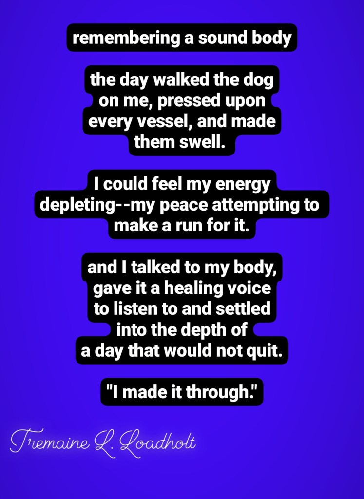 Good for you, making it through. Talking to one’s body is a skill. Afraid my bones have become a bit tone deaf. Have a great new day, and say hey to your puppy buddy.