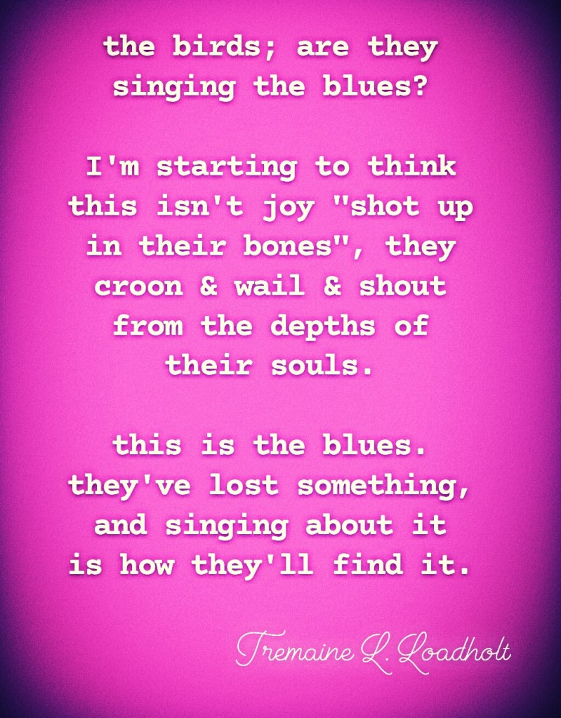 the birds; are they singing the blues? 05/04/202305/04/2023trE Pictured Poem created by Tremaine L. Loadholt