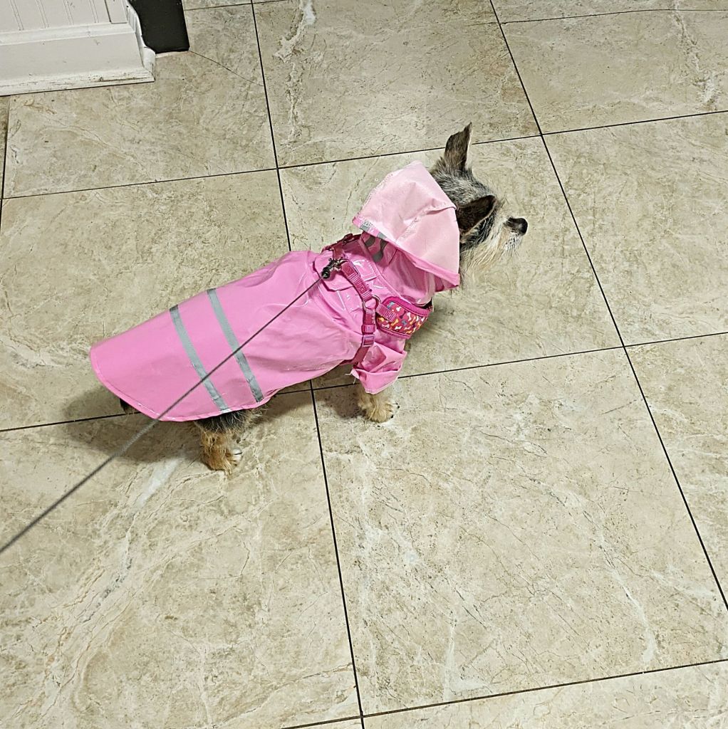 2. Jernee Timid finally wore her raincoat outside in the nasty weather we were having on Tuesday of this week.