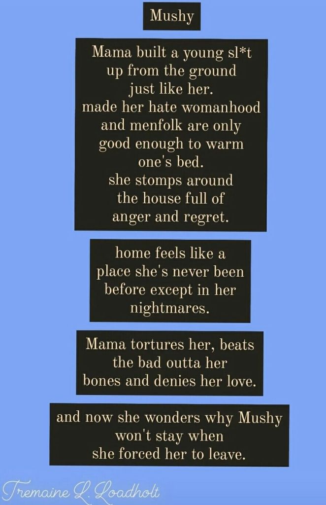 2. Mushy is the first poem about one of the characters from The Darkest Child. I am writing poems because this is how I move through things that bring pain to my doorstep.