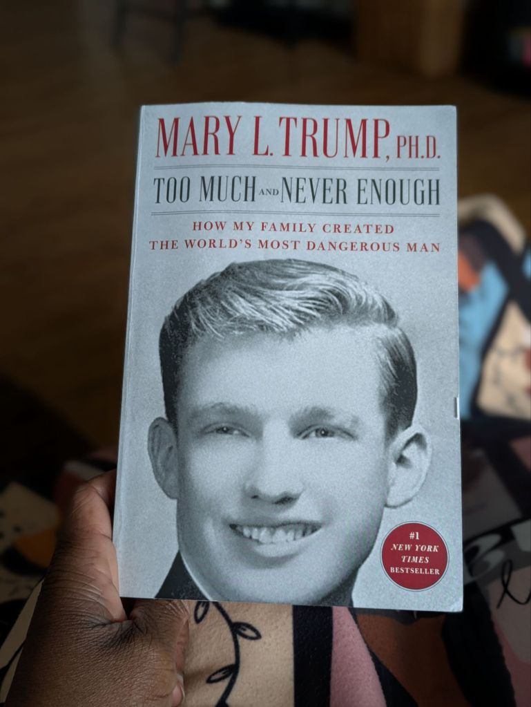 Recently, I finished Mary L. Trump’s book,Too Much and Never Enough: How My Family Created the World’s Most Dangerous Man, which I believe everyone in the United States should read. I sat with this book for a few weeks, savoring it. I did not want to rush through it, so I did not. I took everything in, digested all of it as best as I could, and I am happy that I spent as much time with it as I did.