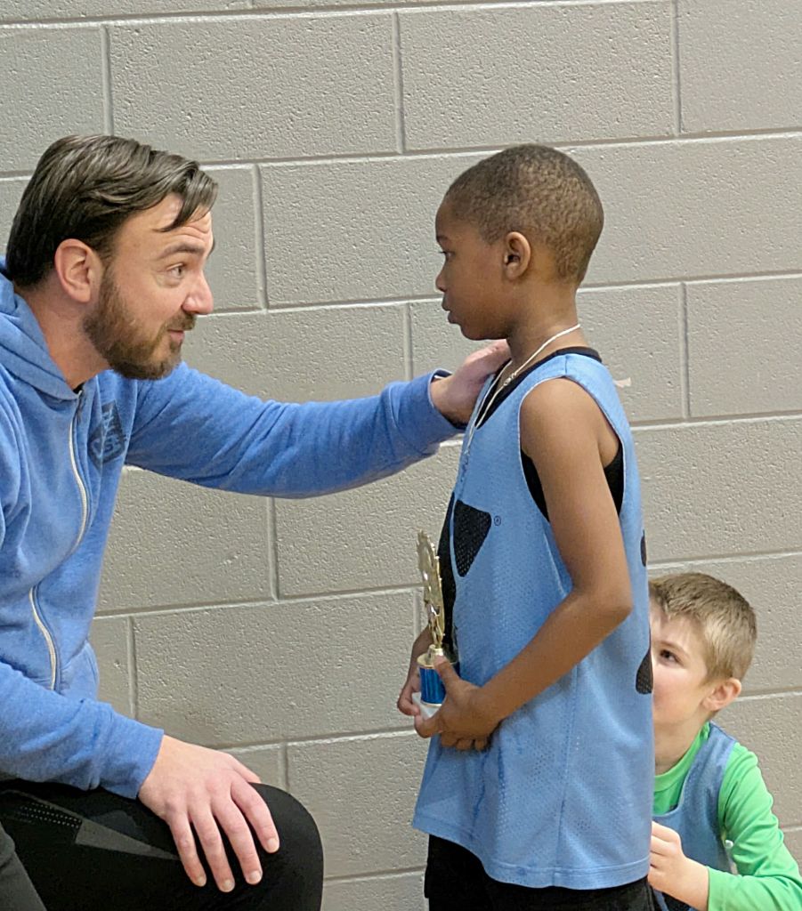 Caison accepting his trophy and a few words of encouragement and congratulations from his coach. Saturday, February 15, 2025. Photo Credit: Tremaine L. Loadholt