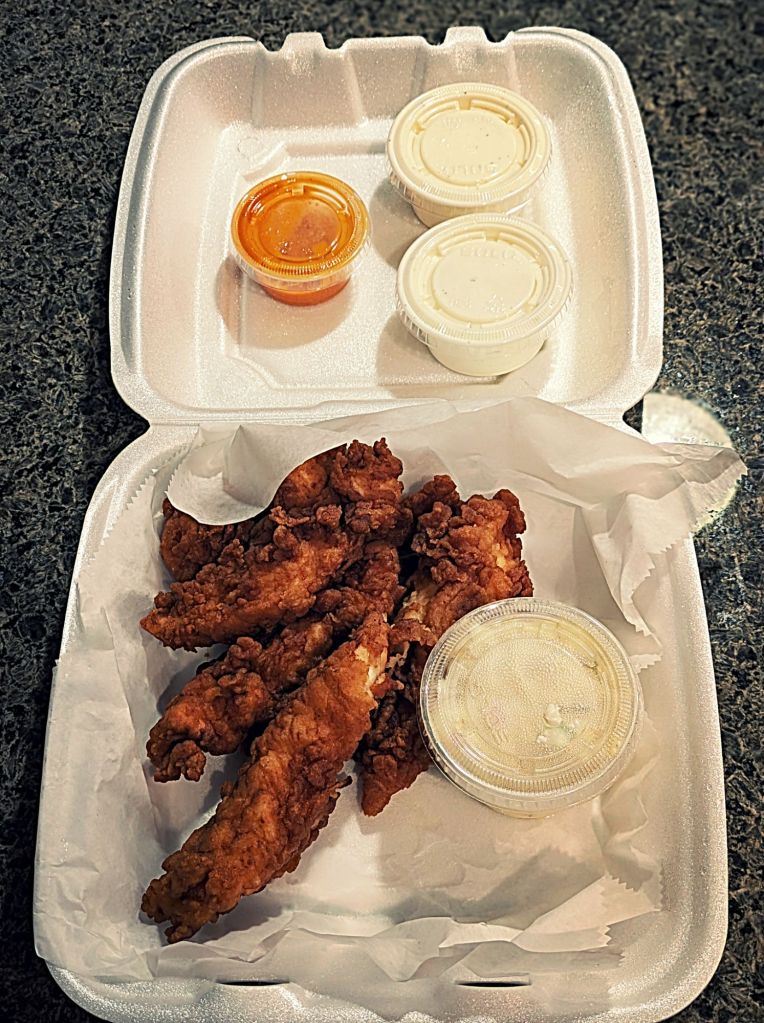 Saturday dinner: chicken tenders and potato salad from TJ’s Deli. Saturday, April 12, 2025. Photo Credit: Tremaine L. Loadholt