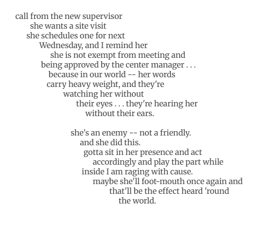 This tanka was written to briefly describe the fact that I recently filed a report to HR for the racial tension and discrimination my co-workers and I have experienced regarding our new supervisor over the last few days at work.