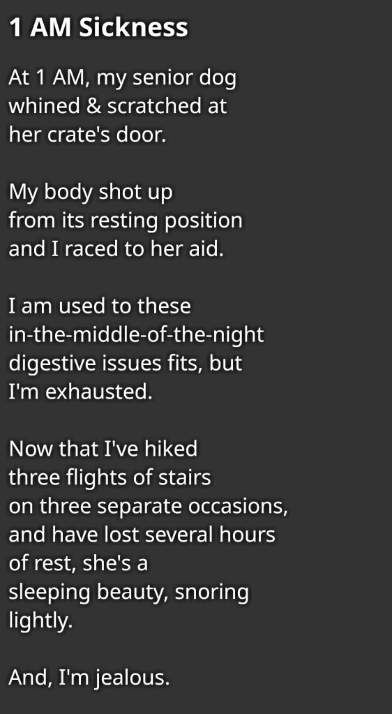 Cherish turns her head but her eyes remain closed. A small breath of air leaves her chapped lips. She tries to speak, but nothing comes forth. Marci continues. She is praying to her daughter’s trembling hands instead of the God she has known for forty years. She is praying to the monitors, to the adjustable bed, to the sanctity of this very moment between her and her daughter, but not to her God.